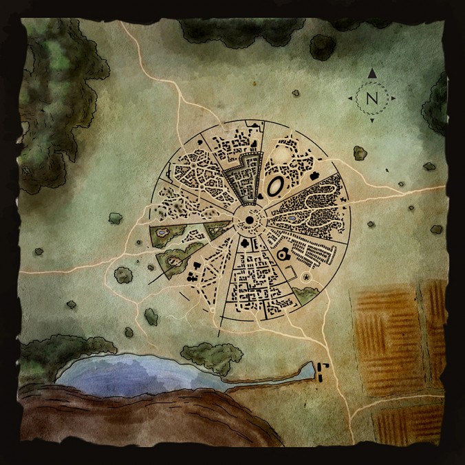 When the great war ended, the truce was reinstated with an addendum. To avoid any turf skirmishes moving forward, each group would also be allotted equal land to do with as they saw fit. A great Dwarven architect of the era, Brourdus Ironbeard, was hired to draw up plans for the city. His design was symbolic in that it was shaped like the great nexus, where all religious planes are connected to each other, known as the Shadowfell. The city was built in a circle with a spire built in the middle to represent the great forgotten god. Skyward Pillar now houses the ivory spire that the original spire was built around.